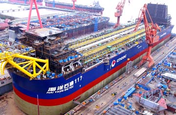 8日,我國迄今為止建造的噸位最大、造價最高、技術(shù)最新的30萬噸海上浮式生產(chǎn)儲油船“海洋石油117號”在上海外高橋造船有限公司順利下水。據(jù)悉,該船造價高達(dá)2.4億美元,船東是美國康菲石油公司,是我國出口美國的最大宗機(jī)電產(chǎn)品。