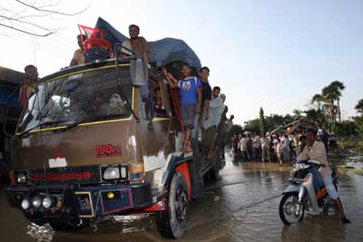 25日,在印度尼西亞亞齊的蘭沙,當(dāng)?shù)鼐用翊畛似囯x開(kāi)自己的家園。印度尼西亞亞齊特區(qū)官員當(dāng)天說(shuō),當(dāng)?shù)匾延?9.8萬(wàn)居民因暴雨引發(fā)的洪災(zāi)而被迫轉(zhuǎn)移。