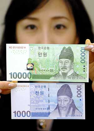 韓國(guó)央行發(fā)行新版萬(wàn)元和千元韓元紙幣