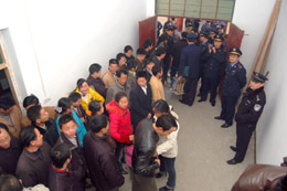 2月5日,安徽省淮南市公安、工商執(zhí)法人員對(duì)查獲的傳銷人員進(jìn)行登記。當(dāng)日,安徽省淮南市在全市范圍內(nèi)展開為期半年的打擊傳銷專項(xiàng)整治工作,公安、工商執(zhí)法人員共搗毀32處傳銷窩點(diǎn),教育、驅(qū)散傳銷人員2113人,遣返226人,并對(duì)23名重點(diǎn)傳銷人員進(jìn)行了審查。