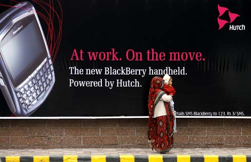 12日,一名印度婦女在首都新德里街頭走過和記埃薩爾公司的廣告牌。英國移動(dòng)通信巨頭沃達(dá)豐公司2月11日宣布,愿以111億美元收購印度主要移動(dòng)通信運(yùn)營商和記埃薩爾公司67%的股份。沃達(dá)豐欲收購的股份來自中國香港富豪李嘉誠所有的和記黃浦集團(tuán)。印度埃薩爾集團(tuán)擁有余下33%的股份。