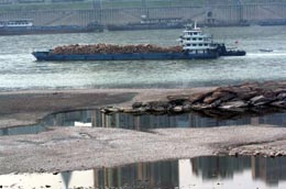 輪船重慶擱淺 長(zhǎng)江航道斷航