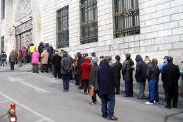 當(dāng)日,2007年首期憑證式國債正式發(fā)行。記者在哈爾濱看到,購買國債的人們早早地在銀行門外排起了長隊,銀行不得不提前開門營業(yè),有的營業(yè)網(wǎng)點在不到一小時的時間里就已售完全部額度。