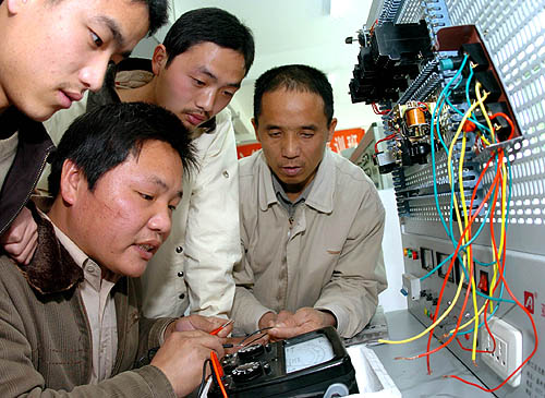 3月21日,農(nóng)民工在福建省職業(yè)技能實(shí)訓(xùn)中心免費(fèi)學(xué)習(xí)電工技術(shù)。為提高農(nóng)民工的勞動(dòng)技能,福建省社會(huì)和勞動(dòng)保障廳從2007年開(kāi)始,面向省內(nèi)外農(nóng)民工提供免費(fèi)技術(shù)培訓(xùn)服務(wù),所有需要技術(shù)培訓(xùn)的農(nóng)民工,都可到福建省職業(yè)技能實(shí)訓(xùn)中心接受免費(fèi)技術(shù)培訓(xùn)。 |