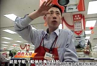“鍋王胡師傅”號稱“宇航材料、無油煙、不粘鍋”,廣告做得鋪天蓋地,定價(jià)也高達(dá)599元。昨天(26日),經(jīng)央視調(diào)查和上海材料研究所檢測中心檢測,“鍋王”只不過是一種普通的鋁合金鍋,成本不過數(shù)十元。 近兩年來,一種號稱解決了廚房油煙問題的“鍋王胡師傅”,在各種媒體上掀起大規(guī)模的廣告攻勢——“全球市場上第一個真正意義上的無油煙不粘鍋”、“采用了一種特殊材質(zhì),能將鍋體溫度控制在油煙揮發(fā)的臨界點(diǎn)240℃以內(nèi),從而達(dá)到無油煙的效果……” 據(jù)悉,北京的物美、華堂、易初蓮花等大型商場超市內(nèi)都設(shè)有胡師傅無煙鍋的銷售專柜。這種鍋的定價(jià)是普通鍋的10多倍。銷售人員稱,昂貴是因?yàn)槭褂玫牟牧蠟殄i鈦(合)金,也就是宇航飛船的外表材料。該鍋的包裝上還稱:該鍋鍋體熔合了純天然礦產(chǎn)紫砂。該紫砂“能分解食物中的脂肪,降低膽固醇,有纖體、美容、益智、延年益壽之功效”。