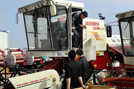 4月11日,農(nóng)戶正在銀川西部農(nóng)資城挑選農(nóng)機(jī)。2007年,中央和寧夏財(cái)政共安排2000萬(wàn)元資金幫助農(nóng)民購(gòu)置農(nóng)機(jī),以提高寧夏全區(qū)農(nóng)機(jī)化裝備水平,農(nóng)機(jī)購(gòu)置補(bǔ)貼極大地調(diào)動(dòng)了農(nóng)民購(gòu)買農(nóng)機(jī)具的積極性。