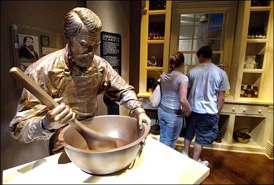 5月24日,在美國(guó)佐治亞州亞特蘭大市,一些游客在新可口可樂(lè)中心參觀。近景為可口可樂(lè)創(chuàng)始人彭伯頓先生1886年配制可口可樂(lè)的雕塑。當(dāng)天,新可口可樂(lè)中心正式啟用。始建于1990年的可口可樂(lè)中心是美國(guó)南部著名的旅游項(xiàng)目和世界上著名的企業(yè)博物館,每年接待75萬(wàn)游客。剛剛啟用的新可口可樂(lè)中心占地8500多平方米,預(yù)計(jì)第一年將接待超過(guò)100萬(wàn)游客。 |