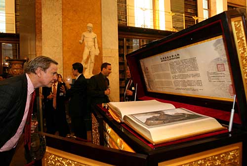 5月30日,在英國倫敦大英博物館,一名觀眾觀看《欽藏英皇全景圖典》。當天,一套18世紀英國風(fēng)物圖冊的復(fù)制版《欽藏英皇全景圖典》在大英博物館開始展出。該圖冊的原品是英國國王喬治三世送給中國清朝乾隆皇帝的壽禮。