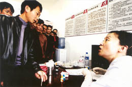 6月4日上午,中鐵四局“工地醫(yī)療隊(duì)”人員為吉林省伊遼高速公路工地農(nóng)民工進(jìn)行身體健康檢查。隨著暑期臨近,為落實(shí)《中華人民共和國職業(yè)病防治法》,保護(hù)勞動者健康和飲食安全,中鐵四局日前開始對遍布全國的500多個(gè)重點(diǎn)項(xiàng)目進(jìn)行一線員工身體檢查和食品安全檢查。