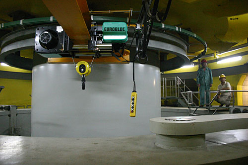 6月11日,工程技術(shù)人員在對率先投入運(yùn)營的22號機(jī)組進(jìn)行監(jiān)測。當(dāng)日,三峽工程右岸電站首臺機(jī)組——22號機(jī)組經(jīng)過一個(gè)多月的調(diào)試運(yùn)行,正式并網(wǎng)發(fā)電,投入運(yùn)營。這標(biāo)志著三峽三期工程開始發(fā)揮效益。 | |