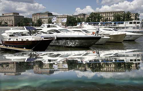 21日,一批游艇停泊在俄羅斯首都莫斯科的莫斯科河上。當天,莫斯科游艇節(jié)開幕。這項活動是由莫斯科游艇愛好者組織的。