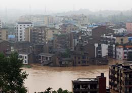 7月17日,重慶市沙坪壩區(qū)陳家橋鎮(zhèn)被洪水圍困。7月16日午后開始,重慶市發(fā)生罕見特大暴雨,平均降水量達200多毫米,其中沙坪壩區(qū)陳家橋鎮(zhèn)地區(qū)降水量達350毫米。截至目前,陳家橋鎮(zhèn)與外界交通已全部被洪水阻斷,總計約近萬人被洪水圍困。抗洪救災(zāi)正在有序進行中。