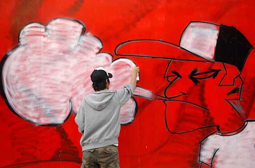 中國首屆涂鴉魅力藝術(shù)展近日在北京中國國際展覽中心亮相。展覽基本覆蓋了國內(nèi)涂鴉創(chuàng)作優(yōu)秀團(tuán)隊及個人的作品,很多作品帶有濃烈的地域特征和文化色彩。不少團(tuán)隊還現(xiàn)場進(jìn)行了涂鴉創(chuàng)作。