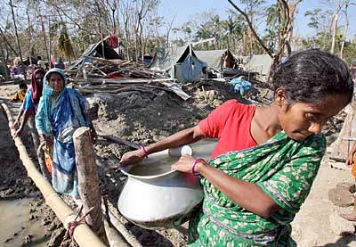 25日,在孟加拉國(guó)的強(qiáng)熱帶風(fēng)暴“錫德”受災(zāi)地區(qū),一名婦女往自己的帳篷里運(yùn)水。孟加拉國(guó)三軍總參謀官馬蘇德當(dāng)日在首都達(dá)卡對(duì)媒體表示,強(qiáng)熱帶風(fēng)暴“錫德”對(duì)孟造成的經(jīng)濟(jì)損失初步估算達(dá)23.1億美元。 | |