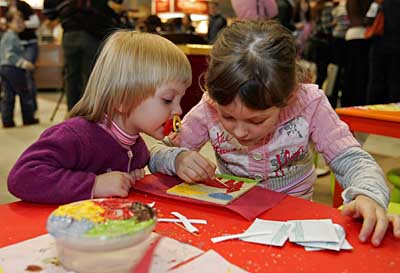 1日,在俄羅斯首都莫斯科舉行的巧克力沙龍活動(dòng)中,兩名小朋友用巧克力制作裝飾畫。正在莫斯科舉行的巧克力沙龍是一項(xiàng)展示、推廣巧克力文化的活動(dòng),人們在這里可以免費(fèi)品嘗巧克力,親手制作巧克力飾品,還能欣賞模特們演繹的由巧克力裝點(diǎn)的時(shí)裝。