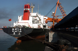 一艘輪船停靠在秦皇島港碼頭。日前,河北省秦皇島港2007年煤炭吞吐量達到2.3158億噸。