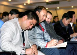 12月25日,學(xué)員在課堂上記筆記。當(dāng)日,上海農(nóng)產(chǎn)品批發(fā)市場為新疆阿克蘇地區(qū)培養(yǎng)農(nóng)村經(jīng)紀(jì)人的首期培訓(xùn)班正式開學(xué)。培訓(xùn)班為期一周,共有60名阿克蘇農(nóng)民參加。