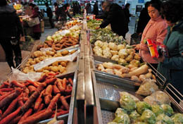 1月16日,市民在銀川市一家超市選購蔬菜。