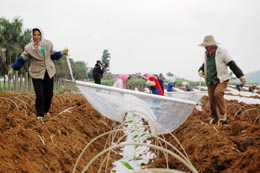 1月24日,廣西南寧市隆安縣金穗農(nóng)場的農(nóng)民正在為香蕉幼苗鋪設(shè)保溫膜。 目前,罕見嚴(yán)寒給廣西熱帶、亞熱帶農(nóng)作物的生長帶來嚴(yán)峻考驗(yàn),廣西近年大力推廣的農(nóng)作物“三避技術(shù)”(避雨、避寒、避曬)發(fā)揮了重要作用,通過搭建避寒拱棚農(nóng)膜、地表栽培地膜等方式,使500多萬畝農(nóng)作物免受寒凍。 |