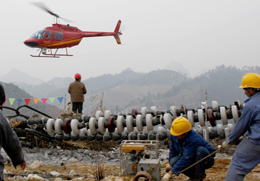 2月17日,一架直升機(jī)在廣東省樂昌市云巖鎮(zhèn)對(duì)遭受冰雪災(zāi)害的±500千伏江城輸電線路的災(zāi)后重建情況進(jìn)行巡查。江城輸電線路的鐵塔多位于深山老林中,那里的積雪覆冰尚未融化,人工巡查的難度很大。連日來,國家電網(wǎng)公司啟用直升機(jī)對(duì)江城輸電線路所處的高山區(qū)域進(jìn)行巡查,并用機(jī)載設(shè)備進(jìn)行拍攝,及時(shí)發(fā)現(xiàn)故障和隱患,為全面恢復(fù)供電提供資料。 |