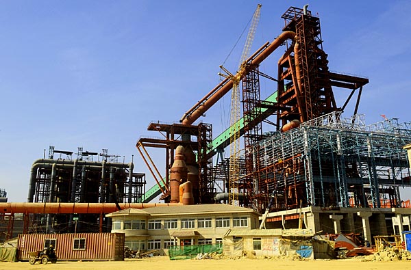 鞍鋼集團在渤海灣建設的年產(chǎn)量650萬噸的鋼鐵廠將于今年下半年正式投產(chǎn)。鞍鋼集團這一新廠緊臨營口港,項目一期工程總投資約300億元,占地8.3平方公里,建設年產(chǎn)650萬噸精品鋼材生產(chǎn)線,包括200萬噸寬厚板、450萬噸熱軋板。圖為即將完成的鞍鋼鲅魚圈精品鋼材基地1號高爐。