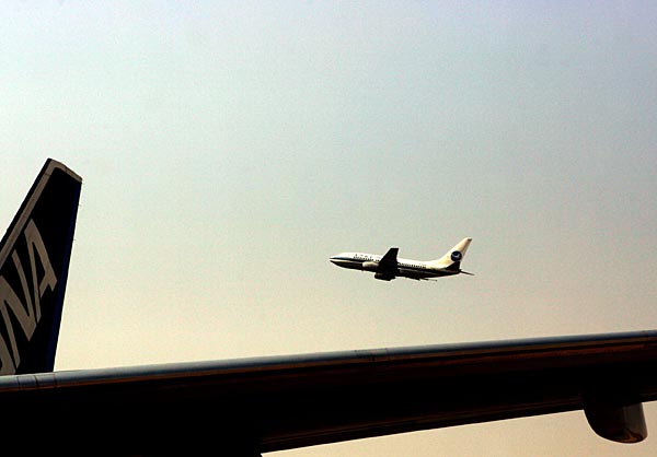 一架飛機從上海虹橋機場起飛(3月1日攝)。民航總局今年出臺一系列硬性措施,專項治理航班延誤。因服務(wù)引發(fā)的群體事件、航班正常率低、航班延誤后服務(wù)措施不到位、超售服務(wù)措施不到位、行李運輸差錯多的航空公司,民航總局兩年內(nèi)不受理其擴大經(jīng)營范圍、設(shè)立分公司的申請。