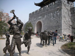 近日,杭州市人民政府對古城墻古城門進(jìn)行了搶救性發(fā)掘與保護,并在古慶春門遺址上恢復(fù)建設(shè)起古城墻與城門陳列館,免費向市民開放,形象性地再現(xiàn)了杭州古城發(fā)展歷史。圖為在城墻外玩耍的年輕人.