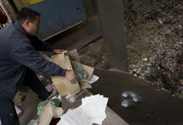 回收的過期藥品被倒入垃圾存儲池準備焚燒銷毀。