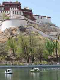 市民在拉薩市的公園內(nèi)劃船。4月26日正值周末,“日光之城”拉薩市風(fēng)和日麗,市民和游客紛紛來到戶外,享受悠閑時光。