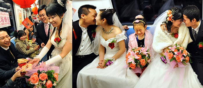 日前,12對新人在江蘇省南京市參加了以地鐵列車為婚車的集體婚禮,讓南來北往的乘客見證愛情、分享快樂。
