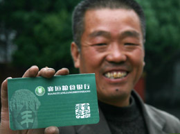 襄垣縣一位農(nóng)民高興地展示“糧食存折”。 |