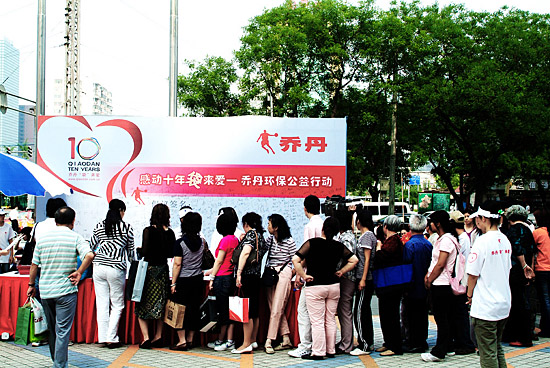 | “喬丹環(huán)保志愿者”派發(fā)環(huán)保購(gòu)物袋 |