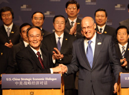 6月17日,第四次中美戰(zhàn)略經(jīng)濟(jì)對(duì)話在美國(guó)安納波利斯開(kāi)幕。國(guó)務(wù)院副總理王岐山和美國(guó)財(cái)長(zhǎng)保爾森作為兩國(guó)元首的特別代表共同主持對(duì)話會(huì)。