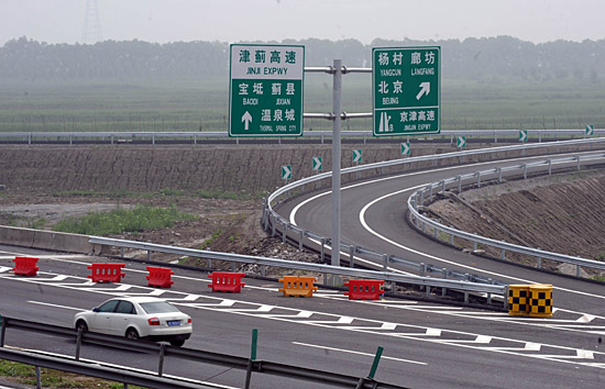 7月2日,一輛小轎車從京津高速和津薊高速公路的互通處駛過(guò)。目前,京津高速公路主線道路工程即將實(shí)現(xiàn)全線通車。京津高速公路北起北京朝陽(yáng)區(qū)西直河,終點(diǎn)到達(dá)天津塘沽區(qū),全長(zhǎng)184.4公里。