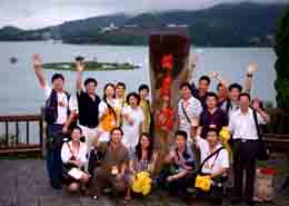 7月6日,大陸居民赴臺(tái)旅游首發(fā)團(tuán)北京分團(tuán)的部分游客在臺(tái)灣著名景區(qū)——日月潭游玩。大陸居民赴臺(tái)旅游首發(fā)團(tuán)7月4日抵達(dá)臺(tái)灣后,開始奔赴各個(gè)臺(tái)灣景點(diǎn)游覽,受到當(dāng)?shù)鼐用竦臍g迎。