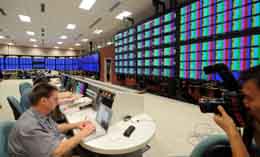 技術(shù)人員北京奧運會國際廣播中心內(nèi)的東道主轉(zhuǎn)播機構(gòu)技術(shù)區(qū)調(diào)試。