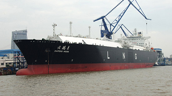 7月10日,中國第二艘液化天然氣(LNG)船“大鵬月”在上海交付船東,這是滬東中華造船(集團(tuán))有限公司繼今年4月3日成功建造中國第一艘液化天然氣(LNG)船后的又一成果。這是“大鵬月”船?吭邳S浦江碼頭。