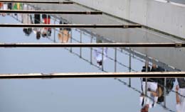 這是為北京奧林匹克公園景觀水提供補(bǔ)充水的北京清河污水處理廠的沉淀池。 高品質(zhì)再生水已經(jīng)在北京奧林匹克中心區(qū)廣泛應(yīng)用,此項舉措每年可以節(jié)約清潔水源3000萬立方米。為奧運(yùn)中心區(qū)提供的高品質(zhì)再生水,是以清河污水處理廠二級出水作為水源,通過清河和北小河兩家再生水廠的超濾膜工藝以及MBR和反滲透處理工藝后,再完成活性炭吸附、臭氧氧化等程序。2008年3月,高品質(zhì)再生水便應(yīng)用于奧林匹克中心區(qū)的景觀及綠化項目,而且還成為“鳥巢”等眾多奧運(yùn)場館的日常用水。 |
