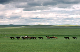 馬匹在內(nèi)蒙古呼倫貝爾草原天然草場(chǎng)奔跑(7月21日攝)。從2000年起,內(nèi)蒙古自治區(qū)大力推進(jìn)生態(tài)建設(shè),使自治區(qū)的森林覆蓋率、林木蓄積量實(shí)現(xiàn)了雙增,荒漠化土地、沙化土地實(shí)現(xiàn)了雙減。截至目前,內(nèi)蒙古禁牧休牧草原達(dá)到7.3億畝以上,退化沙化草原面積由7億畝下降到5億畝,完成京津風(fēng)沙源治理等林業(yè)生態(tài)建設(shè)8289萬(wàn)畝,森林覆蓋率提高到17.57%。 |