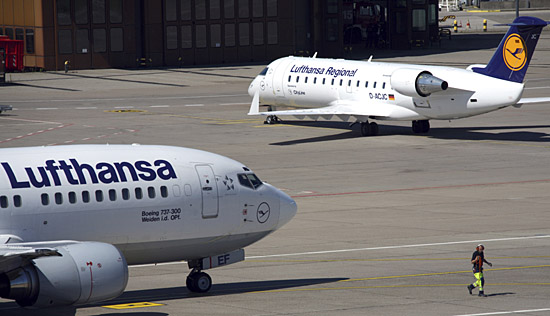 29日,在德國柏林的泰格爾機場,一名地勤人員走過漢莎航空公司的一架波音飛機。由于公司員工為爭取加薪發(fā)起罷工行動,德國漢莎航空公司當天取消了70班航班。新華社/路透