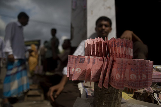6日,在孟加拉國首都達(dá)卡,一名換鈔小販招攬生意。由于7月的入境匯款達(dá)到創(chuàng)紀(jì)錄的8.3億美元,孟加拉國的外匯儲(chǔ)備增加到近60億美元。