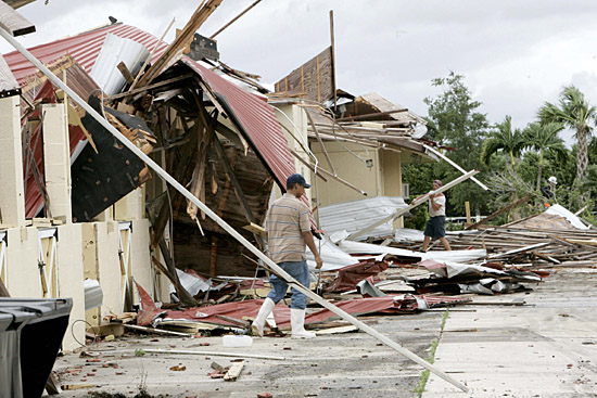 19日,兩名工人在美國(guó)佛羅里達(dá)州的惠靈頓清理一家被熱帶風(fēng)暴“費(fèi)伊”毀壞的診所。當(dāng)日,今年大西洋颶風(fēng)季第6個(gè)熱帶風(fēng)暴“費(fèi)伊”登陸美國(guó)的佛羅里達(dá)州。 新華社/路透