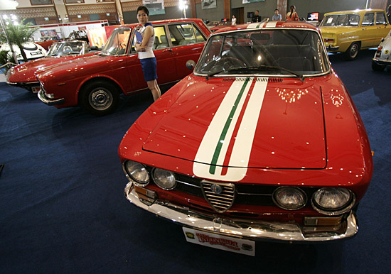 24日,在印度尼西亞首都雅加達(dá)舉行的古董車展上,人們觀看老式汽車。這場展覽展出了不同時代和不同汽車廠商制造的約100輛古董車。新華社/路透
