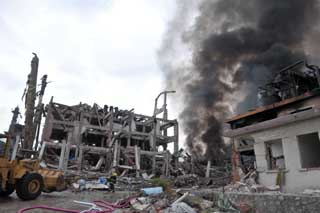 8月26日,救援在緊張進行。當日6時45分,位于廣西宜州市郊的廣西維尼綸集團有限責任公司(簡稱廣維)有機車間發(fā)生一起爆炸事故。截至15時40分,已有5人死亡,醫(yī)院收治傷員55名,尚有14人失去聯(lián)系。目前火勢已得控制,但仍未完全撲滅。