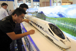 9月2日,中國北車長春軌道客車股份有限公司生產(chǎn)的“和諧號”動車組的模型引起不少年輕人的興趣。