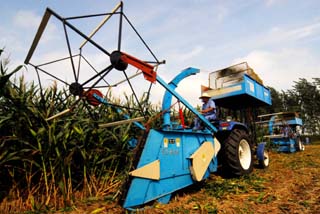 山東鼓勵發(fā)展青貯玉米種植。8月29日,大型機(jī)械在山東臺兒莊區(qū)吳莊村田地里收割青貯玉米。新華社發(fā)(高啟民
