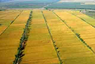 美麗富饒的“塞上江南”(9月17日攝)。 寧夏回族自治區(qū)水利廳提供的統(tǒng)計(jì)數(shù)據(jù)顯示,在過(guò)去50年,寧夏引黃灌區(qū)面積凈增400多萬(wàn)畝,總面積比過(guò)去擴(kuò)大了兩倍多。 黃河流經(jīng)寧夏境內(nèi)397公里,自秦漢以來(lái),這里歷代鑿渠引水,發(fā)展灌溉農(nóng)業(yè),溝渠縱橫,沃野千里,形成了被譽(yù)為“塞上江南”的寧夏引黃灌區(qū)。但到解放前夕,這個(gè)古老灌區(qū)水利荒廢、農(nóng)事凋敝,水田面積僅存192萬(wàn)畝。