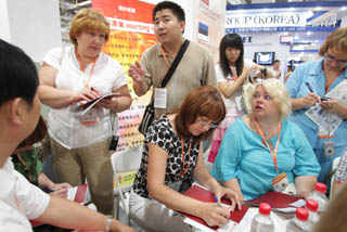 9月23日,各國采購商在上海舉行的國際跨國采購大會上洽談。