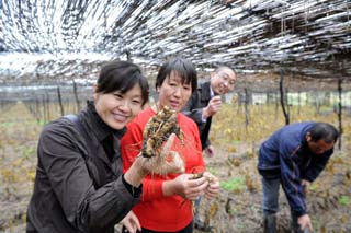 10月5日,游客呂彥(左一)等在京郊懷柔區(qū)渤海鎮(zhèn)的西洋參種植基地參與鮮參采挖農(nóng)事旅游活動(dòng)。 今年“十一”黃金周期間,到郊區(qū)度假、參與特色旅游活動(dòng)是北京市民在長(zhǎng)假中的主要休閑方式。“十一”黃金周期間,十個(gè)遠(yuǎn)郊區(qū)(縣)接待人數(shù)較去年同期增長(zhǎng)18%,旅游收入較去年同期增長(zhǎng)20%。 |