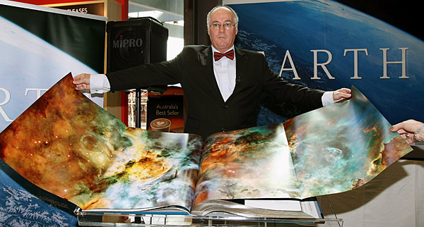 9日,在澳大利亞悉尼,戈登·奇爾斯展示一本題為《地球》的地圖集。該書為手工裝訂,重達(dá)35公斤,共580頁,限量發(fā)行3000冊。書中355張地圖和眾多圖片由100多名學(xué)者和制圖師制作。新華社/法新